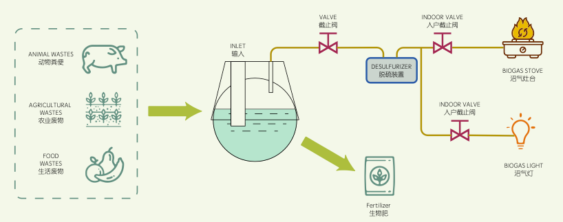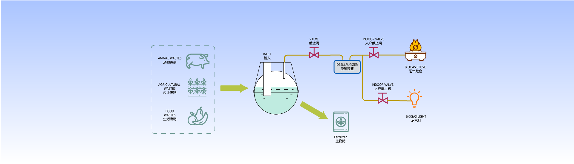- Energy generation: Biogas accumulates in the water tank and is transported to stoves and lamps to meet daily living needs.